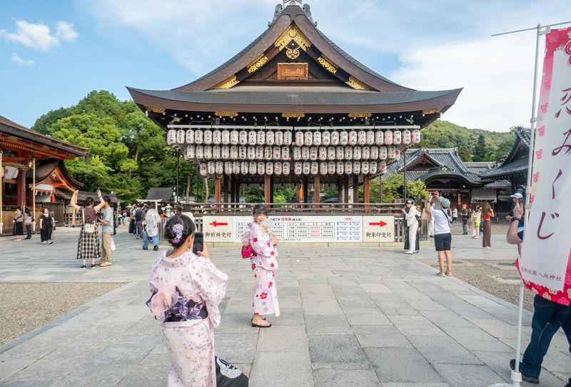 You don’t need a lot of time here; it’s more about taking a short break, walking around the shrine grounds, and enjoying a calmer side of Kyoto. If you’re visiting in the evening, the shrine looks especially beautiful when the lanterns are lit.