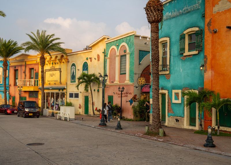 American Village is one of the most lively places on Okinawa’s main island, especially in the evening. Built on a former US airfield, the area feels very different from the rest of Okinawa, with colourful buildings, neon signs, and wide promenades.